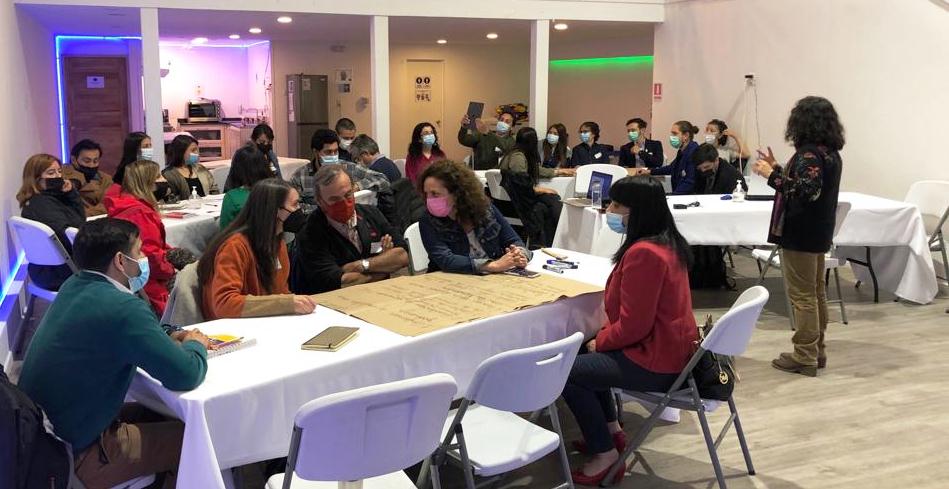 El taller se dividió en dos partes, durante la primera se trabajó de forma individual por medio de una metodología de teclera electrónica, donde se mostraron resultados en tiempo real, y los participantes pudieron realizar consultas sobre características de la situación actual y la situación deseada. La segunda parte contempló trabajo en grupos, y allí se abordaron fórmulas para conseguir la situación deseada, según lo indicado en la pregunta anterior.
