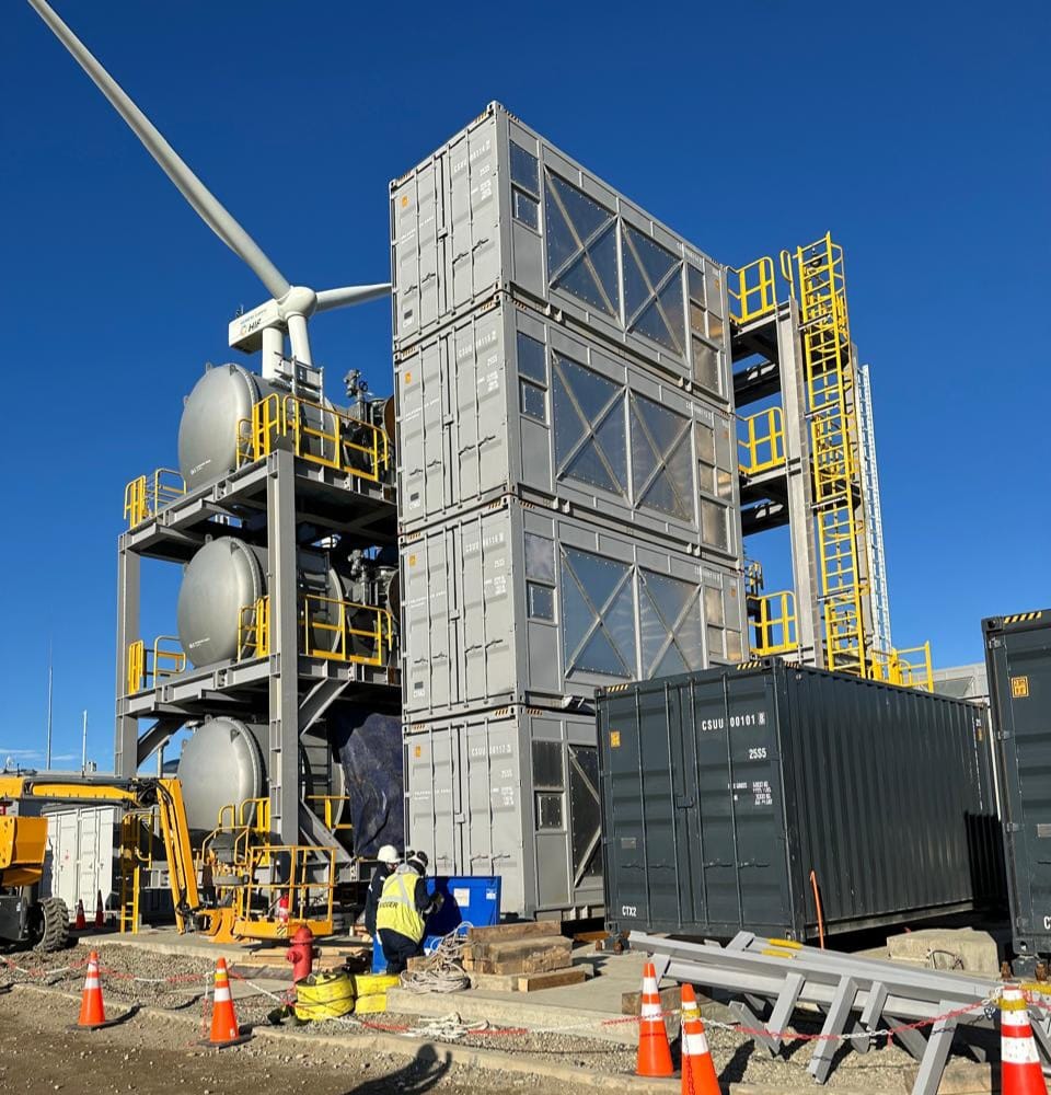 En un nuevo paso hacia la descarbonización, la directora ejecutiva del Comité de Hidrógeno Verde de Corfo, Ana María Ruz; junto a la directora regional de Corfo, María José Navajas, recorrieron las instalaciones de la planta HIF Haru Oni, para constatar los avances del primer sistema de Captura Directa de Aire (DAC) que se implementa en Chile.